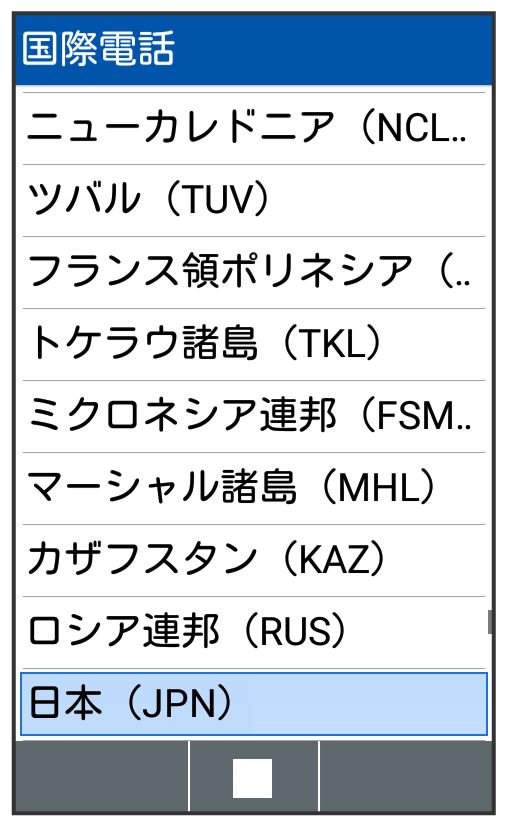 国番号リストが表示されます。