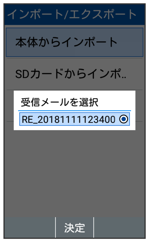 SDカードなどにエクスポートしたvMessage形式のメールデータを、本体にインポートします。