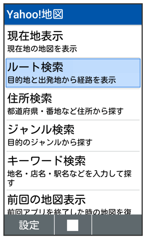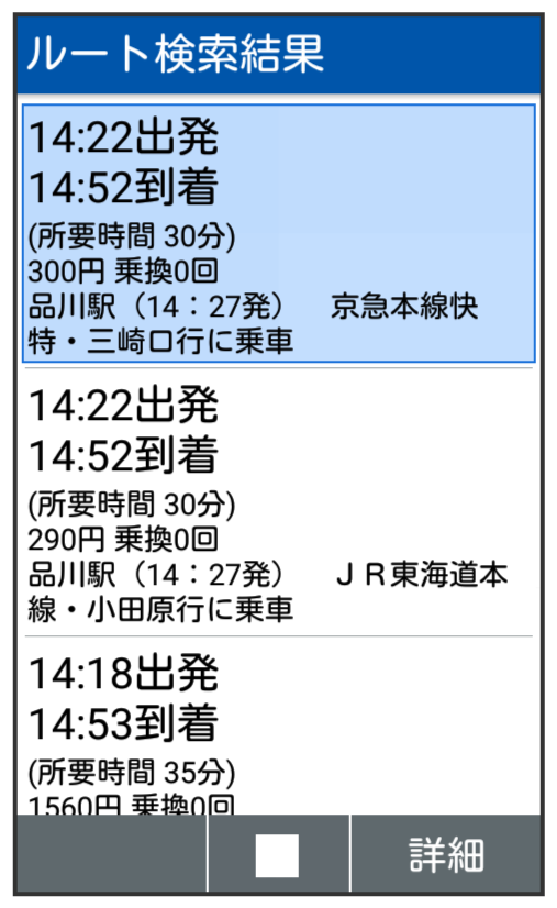 (再検索)を押すと、ルート検索結果を再度表示して選択できます。
