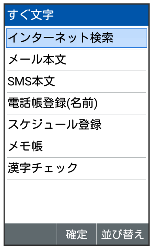 すぐ文字アプリ選択画面で並び替えたいアプリを選択