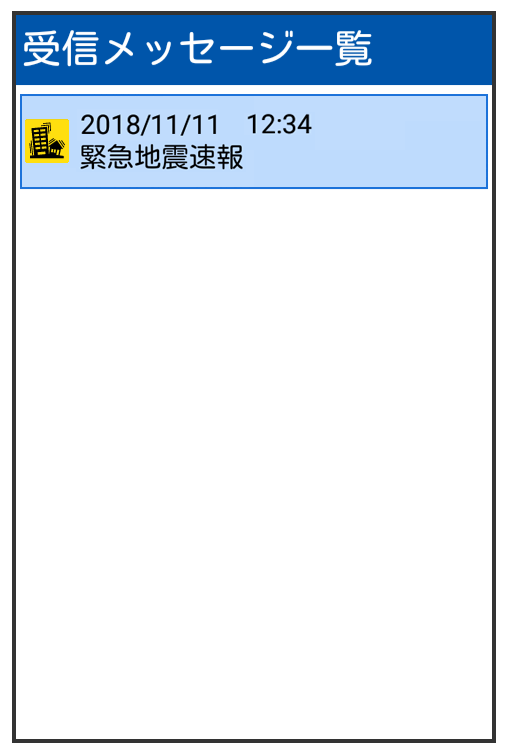緊急速報メール受信メッセージ一覧画面が表示されます。