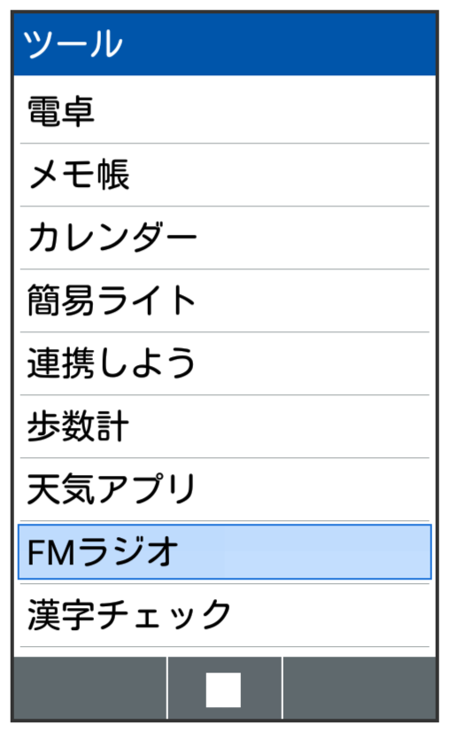 を押すとFMラジオが終了します。バックグラウンド再生時は、アプリ履歴から終了するか、再度FMラジオ画面に戻って