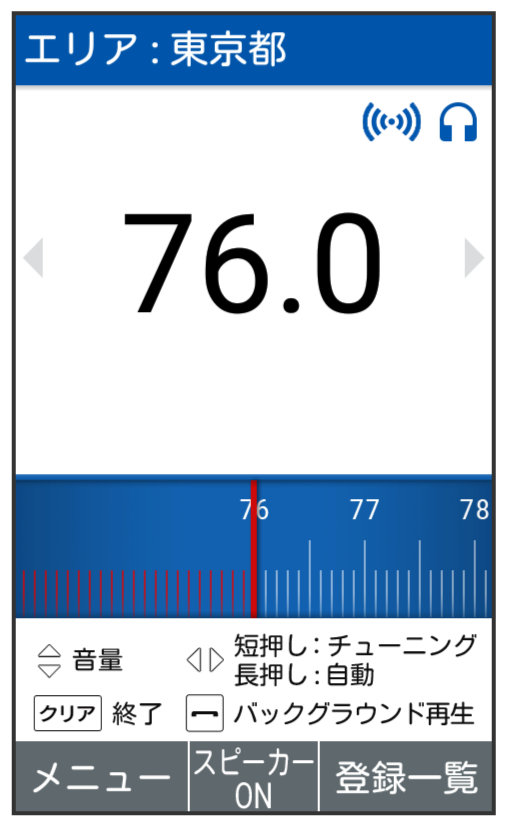 を押して選局のチューニングをします。長押しすると自動で選局されます。