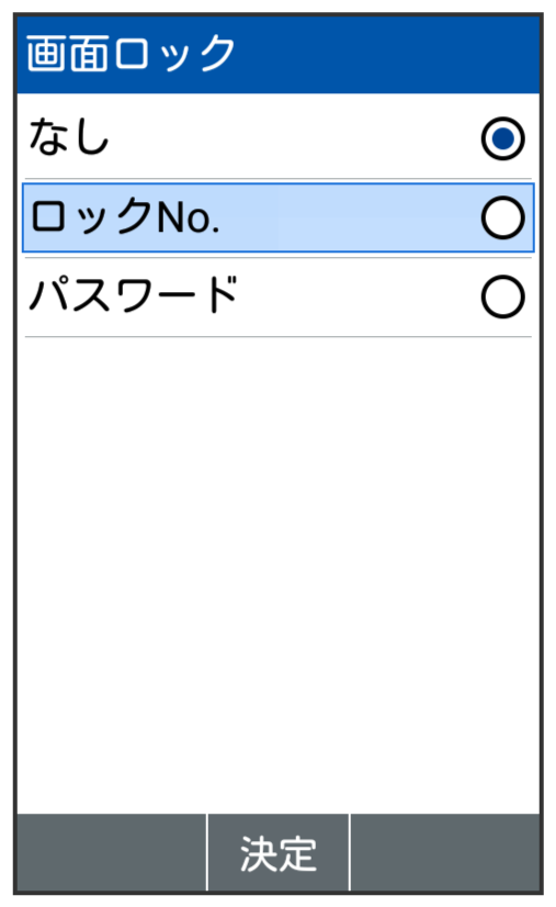 ロックNo./パスワード入力画面で、設定したロックNo./パスワードを入力画面ロックの設定を解除する