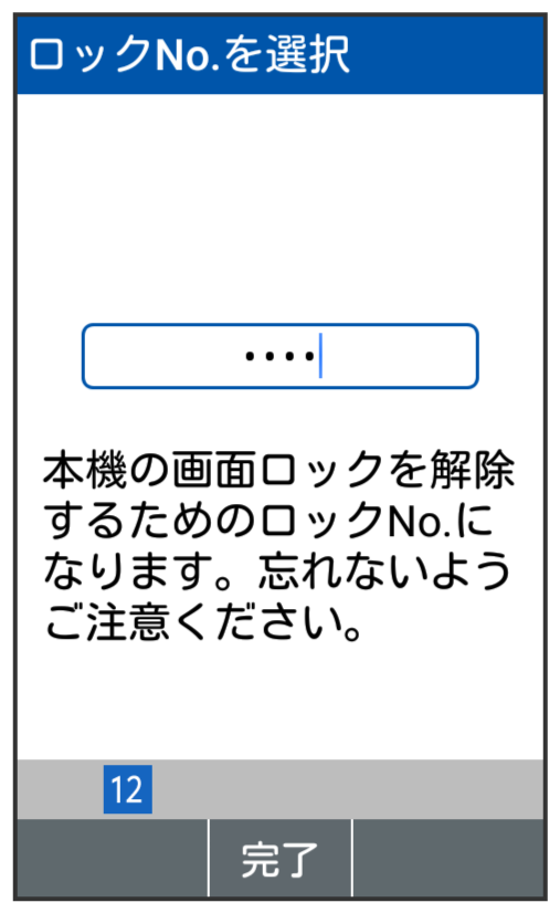 画面ロック解除に設定したロックNo./パスワードはメモに控えるなどして、お忘れにならないようご注意ください。お忘れになった場合は、最寄りのソフトバンクショップにて所定の手続きが必要となります。その際、お客様が登録/設定した内容が消失しますのでご了承ください。