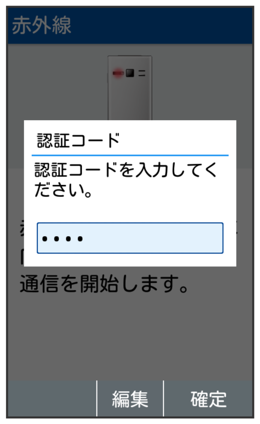 認証コードは、正しい通信相手かどうかをお互いに確認するための暗証番号です。送信側/受信側で同じ数字(4桁)を入力します(特に決まった数字はなく、その通信限りのものです)。