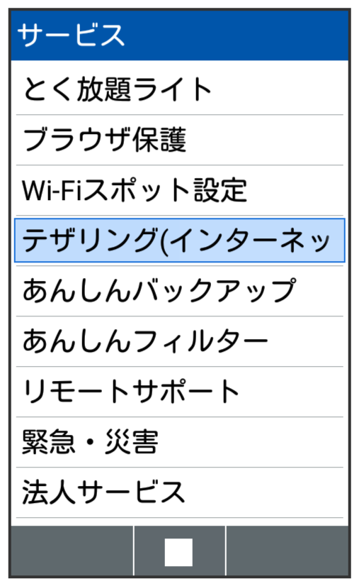 | Wi-Fiテザリング | Wi-Fi接続でテザリング機能を利用するかどうかを設定します。 |