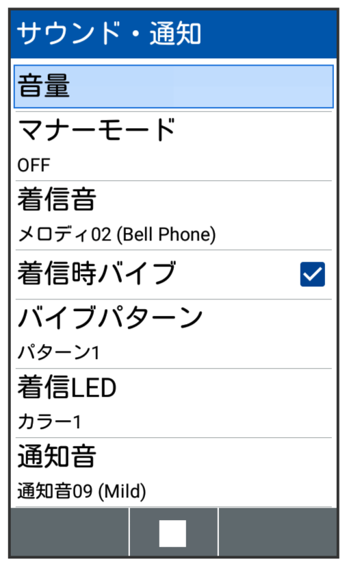 サウンド・通知画面で項目を選択- マナーモード設定時はモードによって音量を変更できない項目があります。