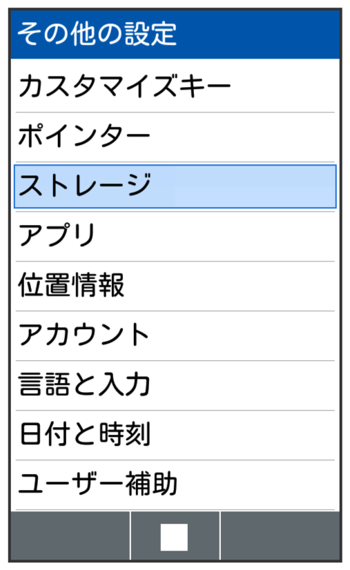 本体メモリやSDカードのメモリ容量の確認や、SDカードのマウント/マウント解除、SDカード内のデータの消去などが行えます。設定できる項目は次のとおりです。