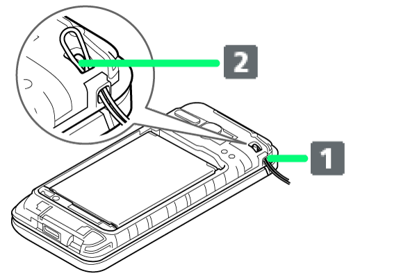 )にストラップを掛けて外側へ引いてください。ストラップ取り付け後は、電池カバーを取り付けてください。