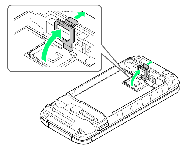 - 背面カバーのくぼみに指先をかけて、電池カバーを矢印の方向へゆっくりと持ち上げるようにして取り外してください。