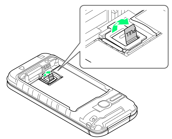 - 背面カバーのくぼみに指先をかけて、電池カバーを矢印の方向へゆっくりと持ち上げるようにして取り外してください。