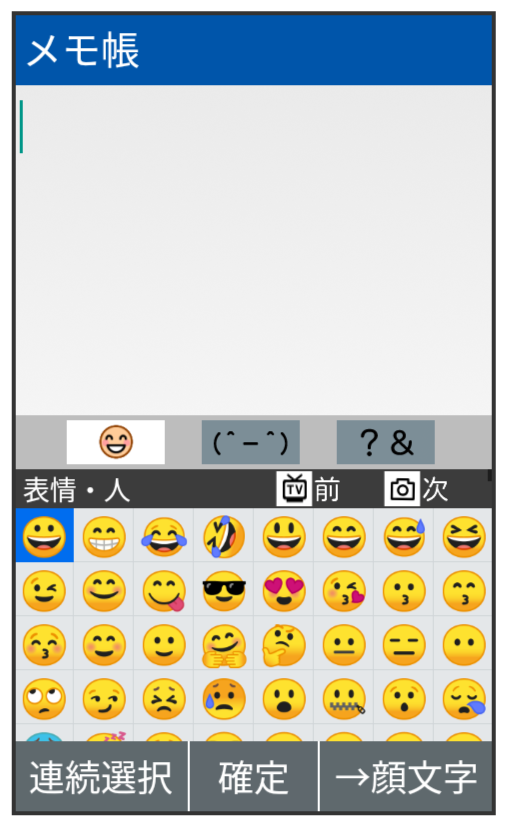 (連続選択)を押します。 - 文字種にかかわらず、絵文字は全角で入力されます。