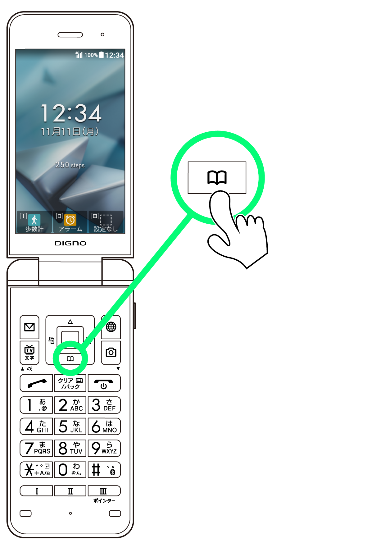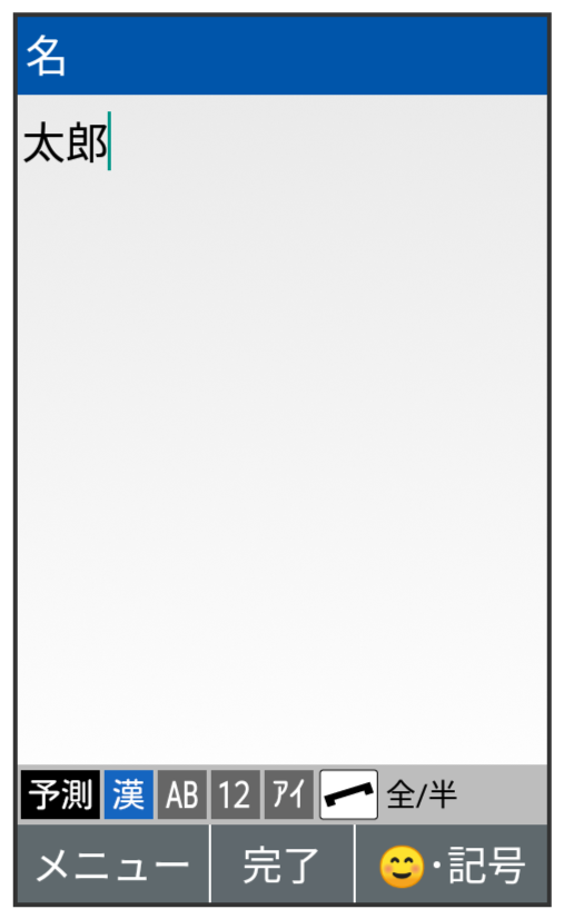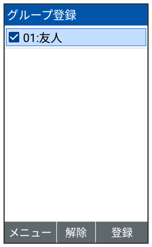 電話帳に、名前、電話番号、メールアドレス(いずれかの入力は必須)、グループを登録する方法を例に説明します。