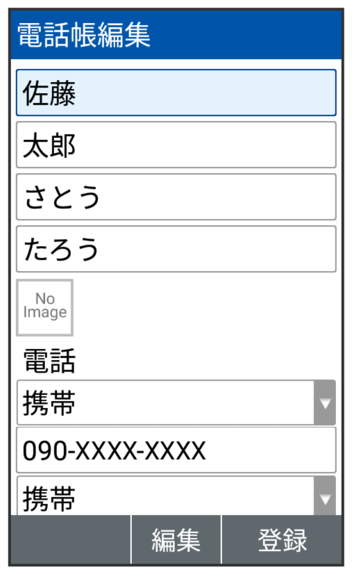 電話帳編集画面で住所欄の////内容を入力誕生日を登録する