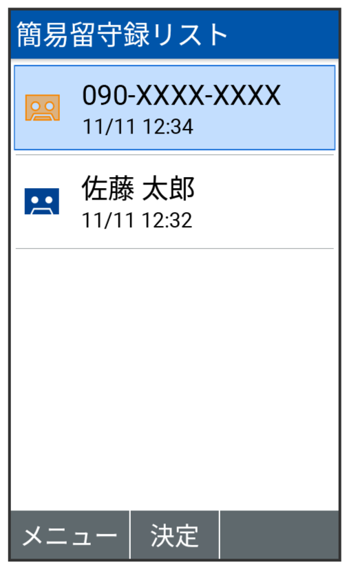 簡易留守録リスト画面で用件を選択- 保護された用件には