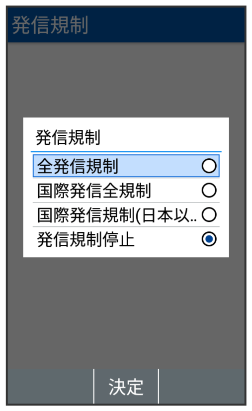 | 国際発信規制(日本以外) | 滞在国と日本以外への国際電話の発信を規制します。 |