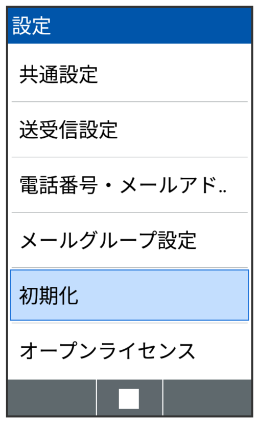 初期化画面で- メッセージが表示され、設定が初期化されます。