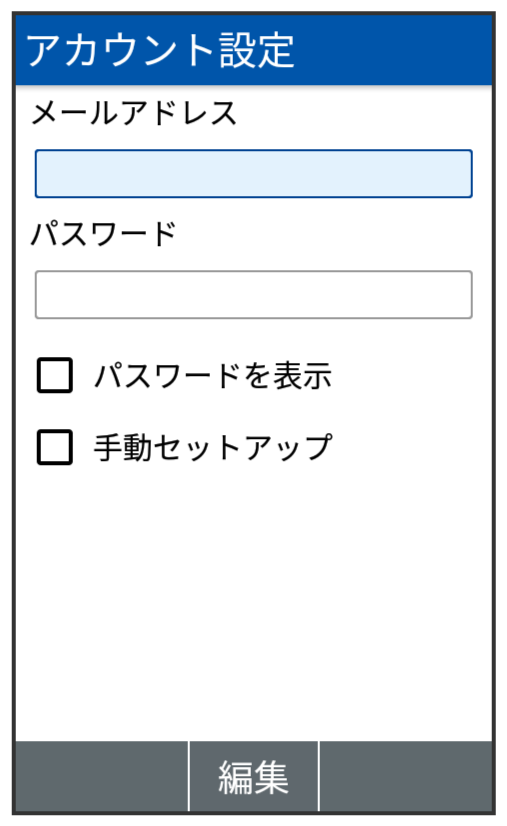 - アカウント未設定の場合は、アカウント設定画面が表示されます。