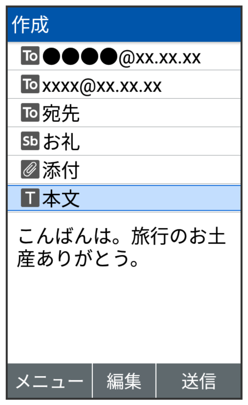 PCメール作成画面で添付ファイルの種類を選択PCメールの添付ファイルを削除する