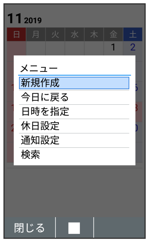 カレンダー画面が表示されます。