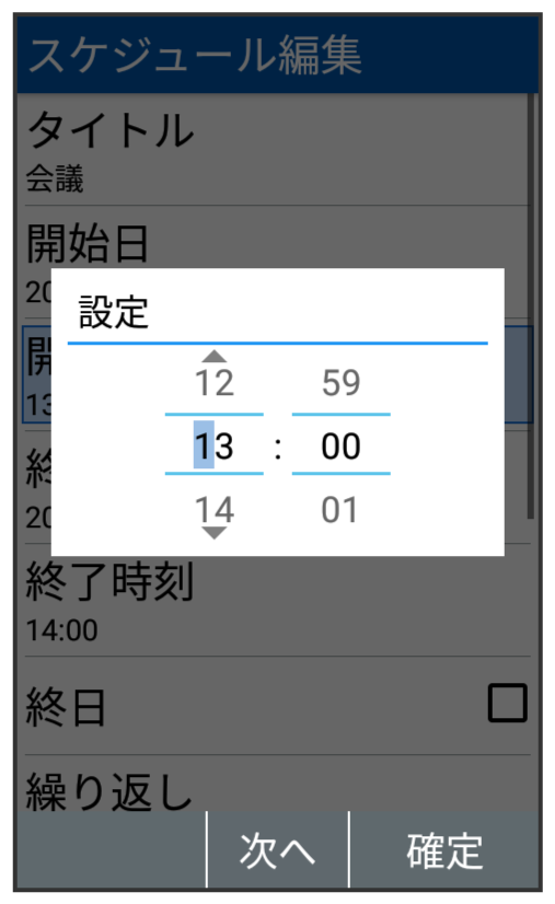 開始日/開始時刻/終了日/終了時刻を入力