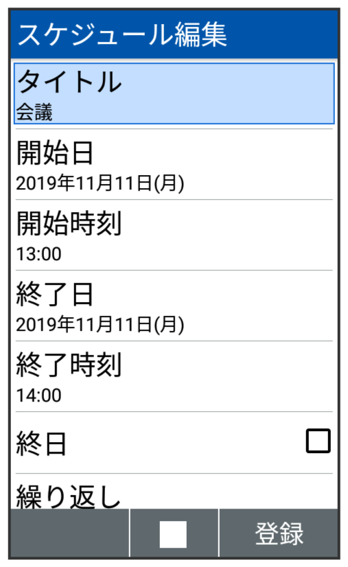 用件、開始日時/終了日時を登録する方法を例に説明します。
