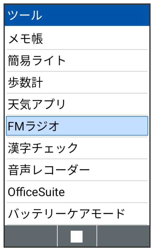と操作すると、FMラジオが終了します。バックグラウンド再生時は、アプリ履歴から終了するか、再度FMラジオ画面に戻って