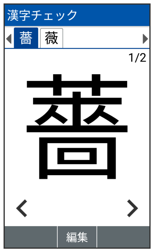 画数の多い漢字などを画面に大きく表示して確認することができます。