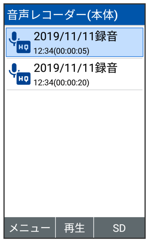 音声一覧画面で送信したいファイルを選択- 確認画面が表示されたときは、画面に従って操作してください。