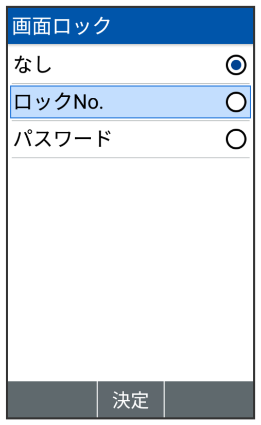 ロックNo./パスワード入力画面で、設定したロックNo./パスワードを入力画面ロックの設定を解除する