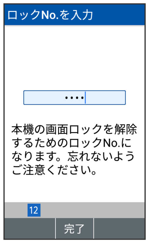 画面ロック解除に設定したロックNo./パスワードはメモに控えるなどして、お忘れにならないようご注意ください。お忘れになった場合は、最寄りのソフトバンクショップにて所定の手続きが必要となります。その際、お客様が登録/設定した内容が消失しますのでご了承ください。