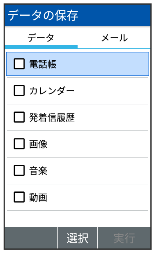 電話帳/カレンダー/発着信履歴/画像/音楽/動画を保存する