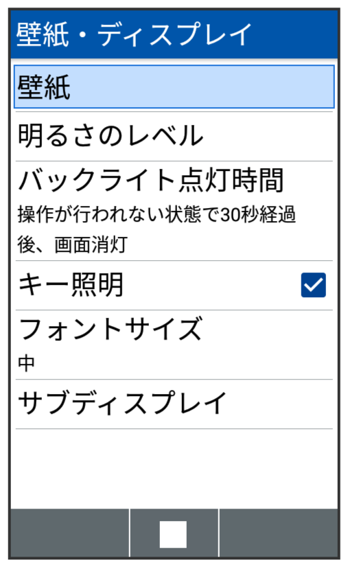 壁紙や画面の明るさなどが設定できます。設定できる項目は次のとおりです。