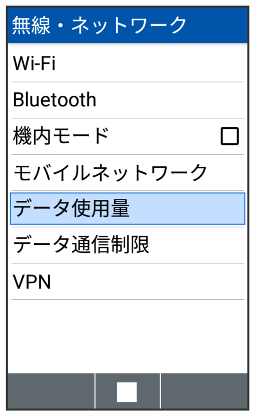 - と操作すると、モバイルデータ使用画面が、表示されます。
