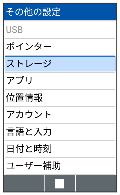 本体メモリやSDカードのメモリ容量の確認や、SDカードのマウント/マウント解除、SDカード内のデータの消去などが行えます。設定できる項目は次のとおりです。