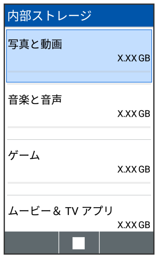 | 合計容量 | 本体メモリやSDカードの合計容量を確認します。 |