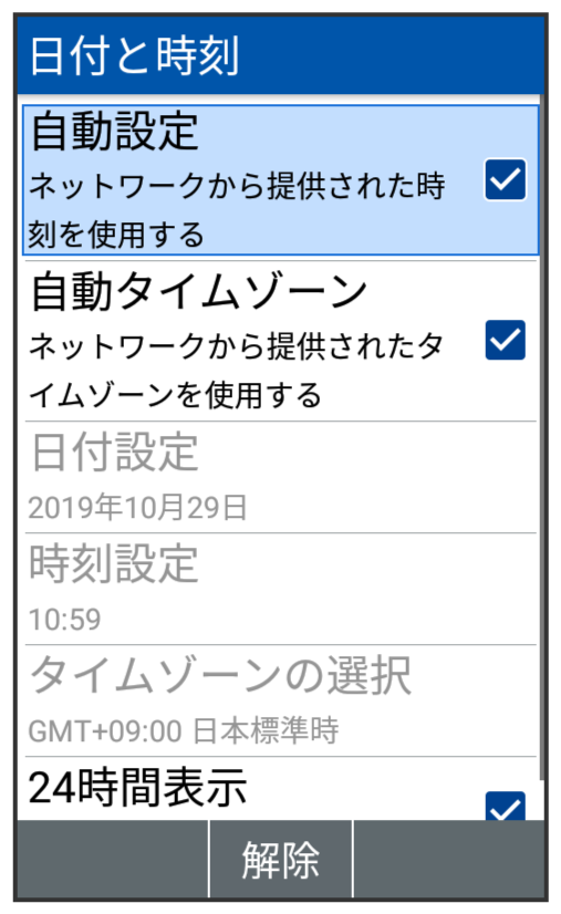 | 自動タイムゾーン | ネットワークから提供されたタイムゾーンを利用するかどうかを設定します。 |