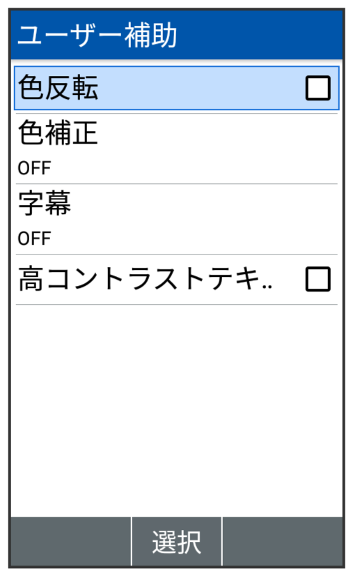 | 高コントラストテキスト | 文字のコントラストを上げ、見やすくします。 |