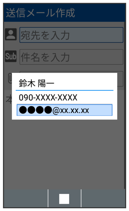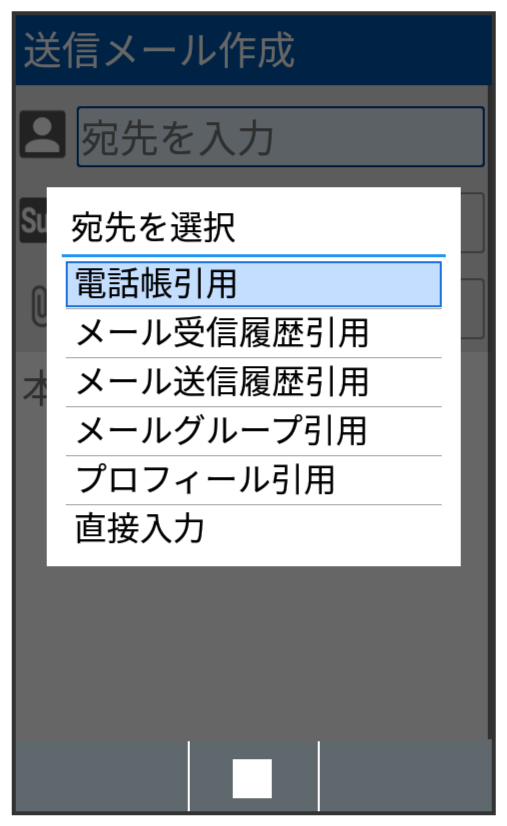 - //と操作すると、電話帳/メール受信履歴/メール送信履歴から宛先を選択できます。