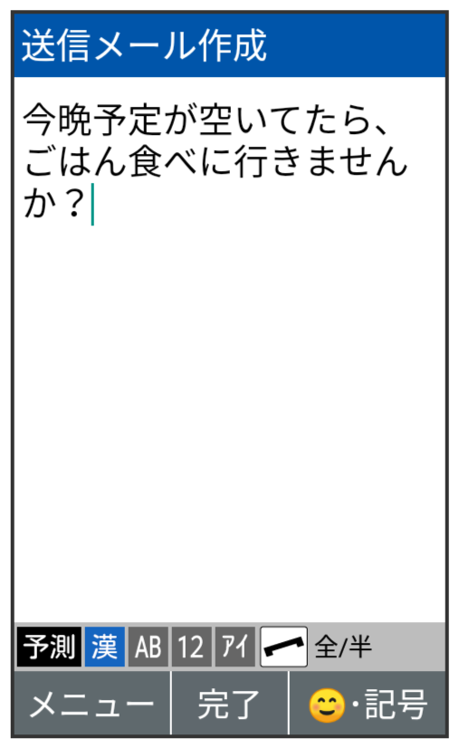 (メニュー)と操作すると、作成中のS!メールを下書きとして保存できます。下書きはに保存されます。下書きのS!メールを選択