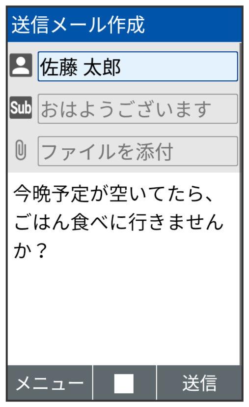 と操作するとファイルを添付できます。詳しくは、「ファイルを添付する」を参照してください。
