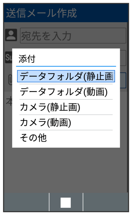 - と操作すると、データフォルダから動画を選択して添付できます。