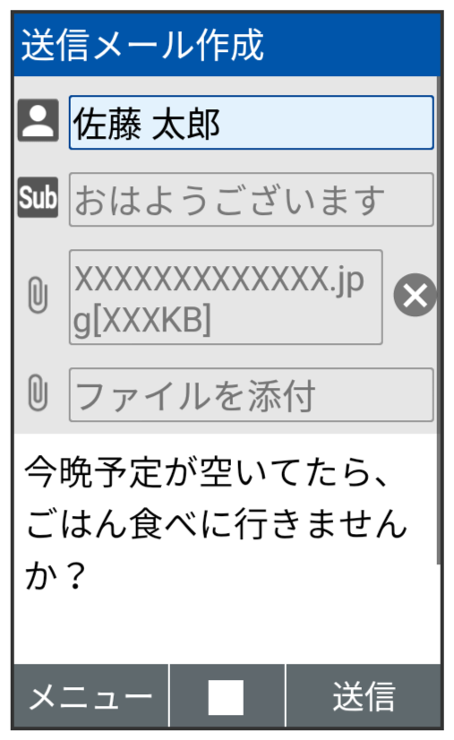 S!メール作成画面で、未入力のファイル添付欄を選択添付ファイルを削除する