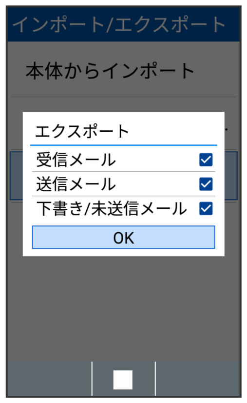 本体のメールデータをvMessage形式でSDカードなどに書き込みます。vMessage形式は、ほかのスマートフォンやソフトバンク携帯電話(3G)と互換性があります。