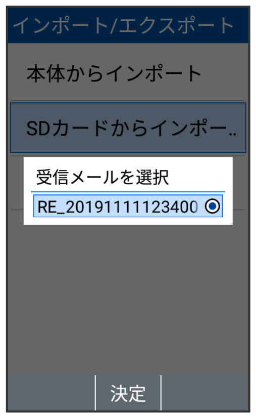 SDカードなどに書き込んだvMessage形式のメールデータを、本体に読み込みます。