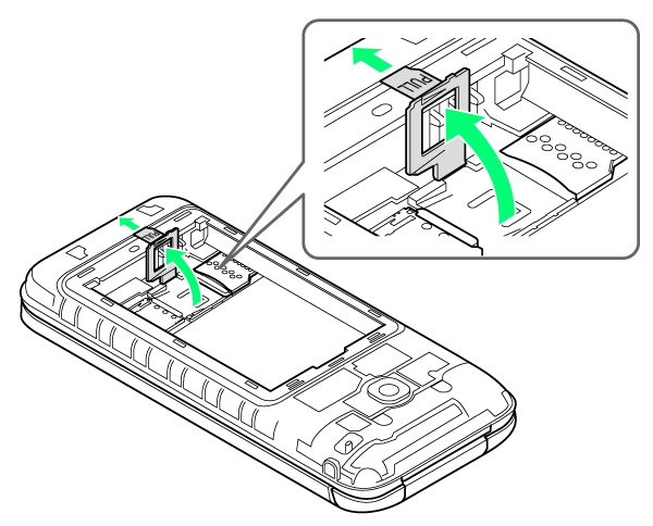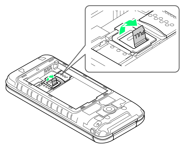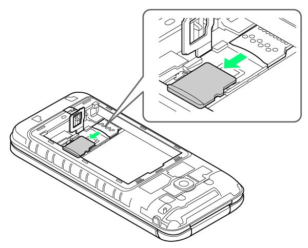 SDカードを矢印の方向にスライドさせ、SDカードスロットから取り外す