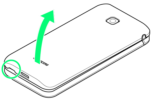 - 背面カバーのくぼみに指先をかけて、電池カバーを矢印の方向へゆっくりと持ち上げるようにして取り外してください。