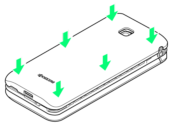 電池カバーと本機を合わせるように置き、電池カバーを矢印の方向へ押す