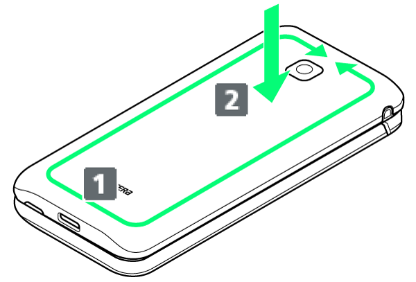 電池カバーと本機を合わせるように置き、電池カバーを矢印の方向へ押す